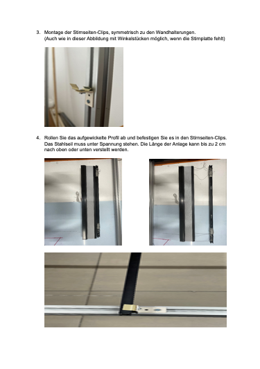 Der Sonnenschutz kommt vorgespannt auf Ihre Bestellte Länge. Sollte es zu locker sein oder etwas durchhängen kann es leicht an den Nachstellschrauben nachgespannt werden.