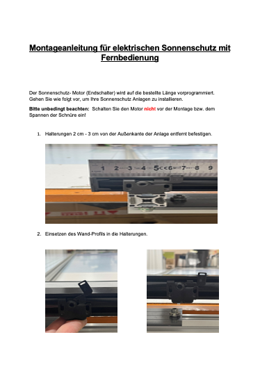 Klicken Sie das Aluminiumprofil des Sonnenschutzes zuerst an der kurzen Lippe, dann an der längeren ein, so das es einrastet.