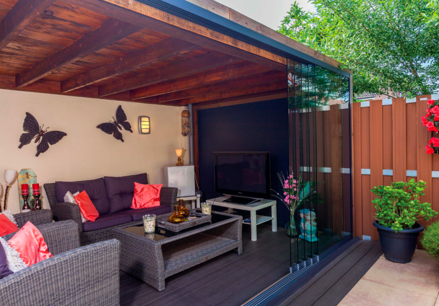 Mit den 10mm ESG Glasschiebewänden von Terragarto können Sie Ihre Überdachung, Carport, Garage oder Lounge ohne Lichteinbuße ganz einfach schließen. Bei schönem Wetter öffnen Sie die Schiebetüren und an kälteren Tagen machen Sie aus Ihrer Terrasse einen geschlossenen Raum. So können Sie Ihre Terrassenüberdachung das ganze Jahr hindurch bequem genießen. Die Glasschiebewände können unter Terrassenüberdachungen, Anbauten, Balkonen und Carports platziert werden. Mit den Schiebetüren können Sie sowohl die Vorderseiteals auch die Seiten des Raumes verschließen. Für die Montage von Glasschiebewänden an den Seiten von Terrassenüberdachungen sind Keile für Glasschiebewände erforderlich.